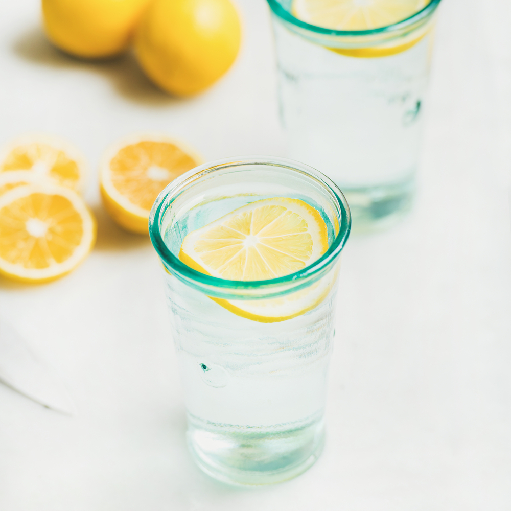 - Pradėkite nuo nedidelio kiekio: į stiklinę vandens (apie 200 ml) įpilkite šaukštą šviežių citrinos sulčių.