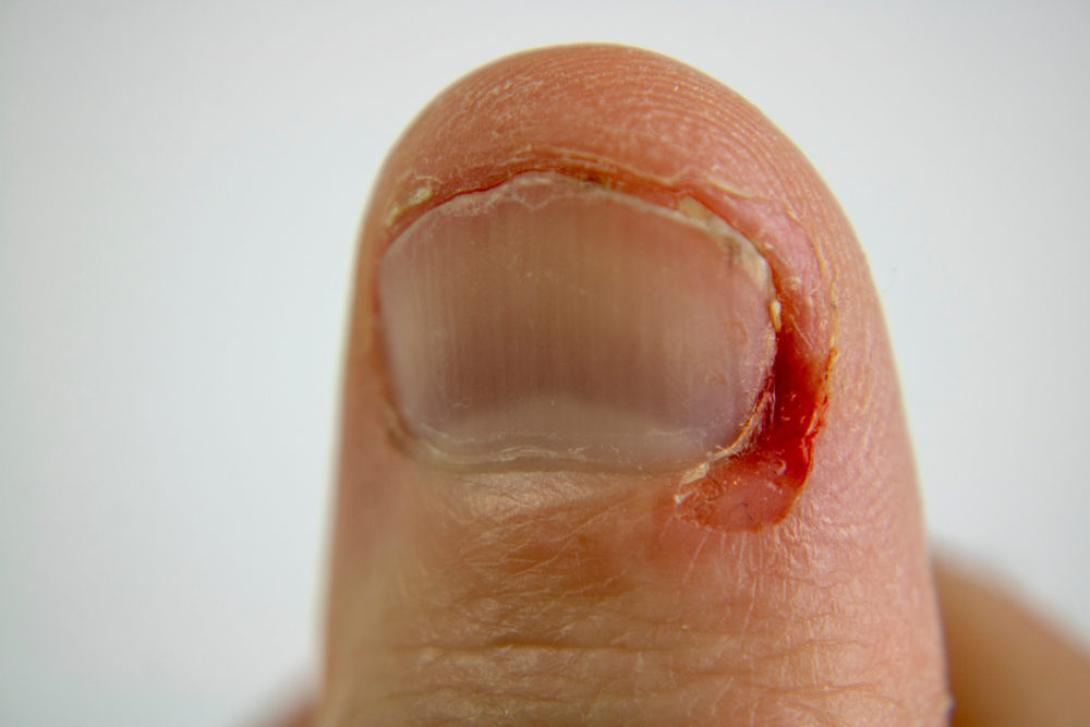• uždegimiškai padidėjusią naują odą prie nago kraštų,