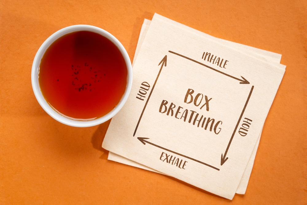 Dėžės kvėpavimas, dar vadinamas kvėpavimu kvadratu, remiasi lėtais, sąmoningais įkvėpimais, sulaikytu kvėpavimu ir iškvėpimais, kurių kiekvienas trunka vienodai – po keturias sekundes. Technikos pavadinimas kilęs iš to, kad keturi lygūs žingsniai sudaro tarsi kvadrato kraštines.