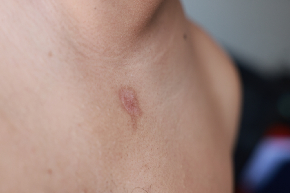 Ant odos gali atsirasti spalvos pakitimų židiniai (pažeidimai), primenantys pleiskanas arba sausą, susiraukšlėjusį popierių. Šios dėmės neretai sukelia niežėjimą, kuris gali būti įvairaus intensyvumo.