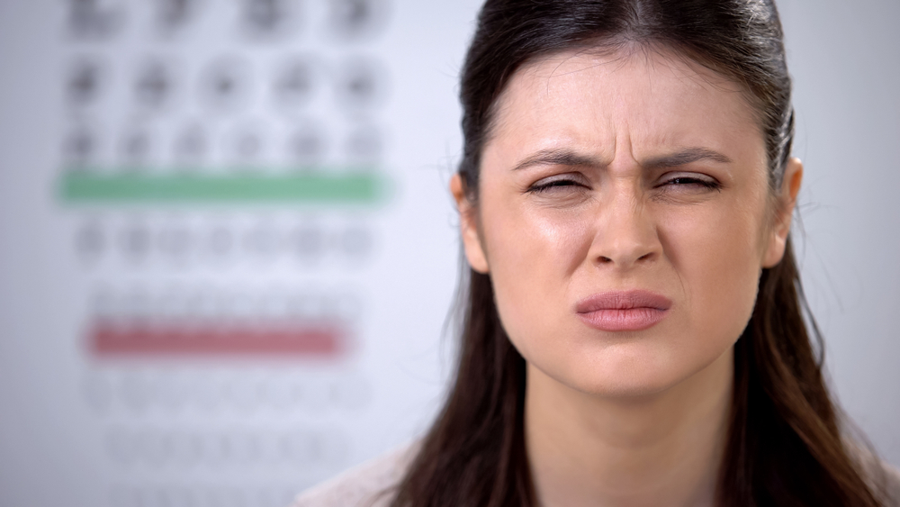 - Susiraukimas žiūrint į tolį.